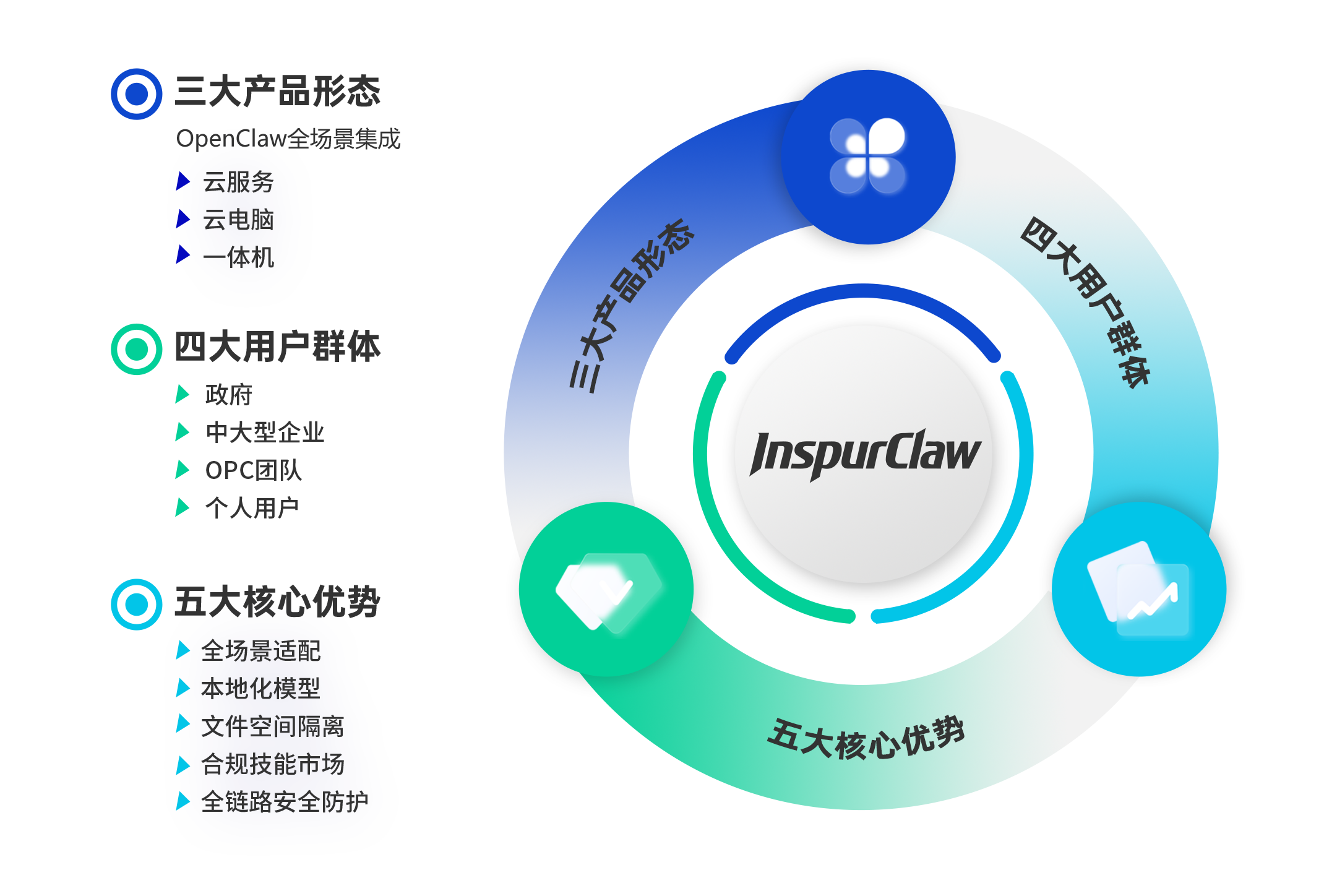 InspurClaw产品体系提供云服务、云电脑、一体机三种产品形态,能够全面覆盖本地不同主体OpenClaw技术应用需求,全面赋能传统软件行业智能化转型,为人工智能产业发展筑牢发展根基。